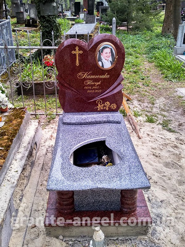Виготовлення дитячого пам'ятника №301 (сірий і червоний граніт)