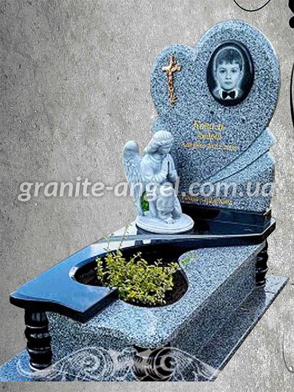 Образ дитини пов'язують з ангелом, і тому так популярні янголята, що присіли на камінь або тримають голуба в руках. На стелах дитячих пам’ятників з граніту досить часто використовуються графічні образи птахів, зображення крилець або серця, квітів, іграшок.
