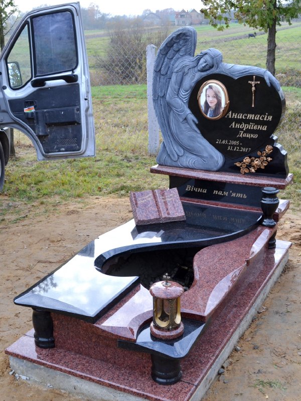 Виготовлення гранітних пам’ятників складних форм вимагає майстерності, знання нюансів роботи з натуральним гранітом, що позначається на термінах виготовлення й ціні – понад 39000 грн. Але такий пам’ятник з граніту буде унікальною й незабутньою прикрасою могили.